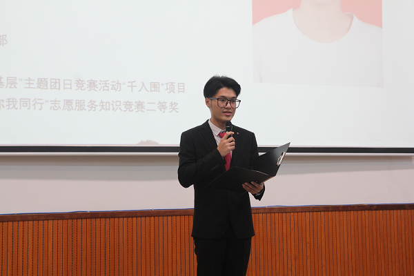 随后,第三届学生会执行主席林浩然做工作报告。他提到,在过去一年,第三届学生会主要完成了以下工作,一是严格学生会成员选拔条件,促进队伍建设;二是举办文体活动,丰富学生的文化生活;三是开展创新创业活动,提升学生的创新能力;四是开展榜样国际宣讲活动,营造优良的院风班风。同时,也提出了以下的工作措施:一是加强学生会制度建设,提高学生会工作效率;二是加强学生会中心间联系,构建优秀团体;三是增强创新,努力建设学院品牌活动;四是营造良好学风,引领学生勤奋向学。