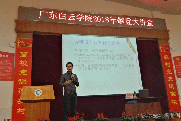 在团省委公布了我校成功入选2018年攀登大讲堂、“攀登计划”进校园活动承办高校的名单后,我校积极开展相关筹备工作,按照既定目标于2018年11月1日举办了广东白云学院2018年“攀登大讲堂”主题活动。