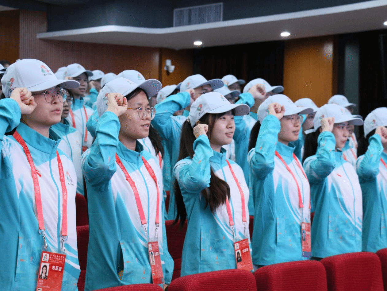 全体志愿者现场宣誓,大声喊出“为湾区添彩,为祖国争光”的铮铮承诺。(图文/团委 王晓艳 苏竞文 青年传媒中心 责任编辑曾进)