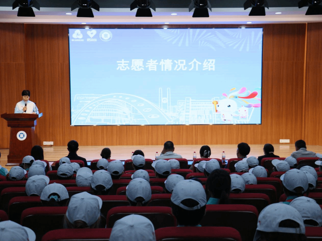校团委王晓艳书记作我校十五运会志愿者情况说明。学校自2024年12月启动十五运会志愿者工作,经过笔试、面试、胜任力测试等多轮选拔,确定180名志愿者(含开幕式志愿者45名),2025年5月31日-6月1日选派50名志愿者参与水球测试赛服务,10月17日起,180名志愿者们进驻广东奥林匹克体育中心跳水游泳馆的11个处室,开展志愿服务工作。